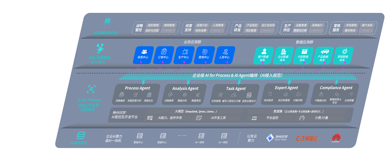 端到端的一站式AI工作空间深度融合了从企业战略规划到日常经营的全流程业务板块,,,定向解决车企内部领域多、、部门多、、、、链条长、、场景碎片化等难题,,,,支持车企快速构建以AI为核心的生产力写作体系,,,,实现任务执行与AI能力的无缝集成与交互